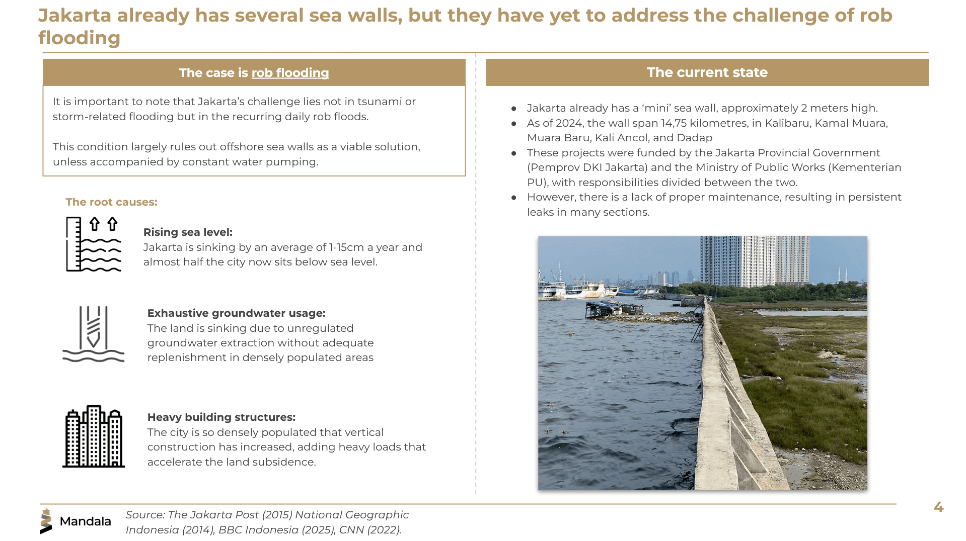 The purpose of this document is to provide general information about Giant Sea Wall for Coastal Protection. The contents of this document should not be construed as specific recommendations or advice. For questions about the contents of this document, please contact Mandala Consulting. The information in this article is accurate as of the publication date. However, due to the rapidly changing nature of the law in Indonesia, the accuracy of the information will be limited.